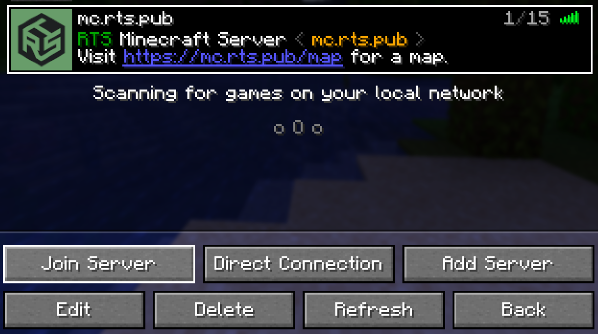 Enter mc.rts.pub for Server Address in the Add Server menu.