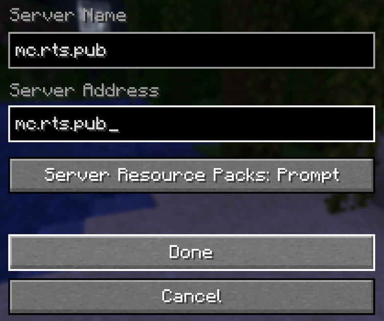 mc.rts.pubforServer Address. - Click